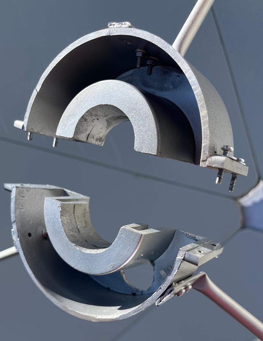 Celui que j’ai récupéré à un diamètre de 1,5m, de construction de qualité très moyenne ( traces de rouille, soudure approximatives, tôle peinte recouverte d’un film réfléchissant qu’il faudra bien entendu ôter).
